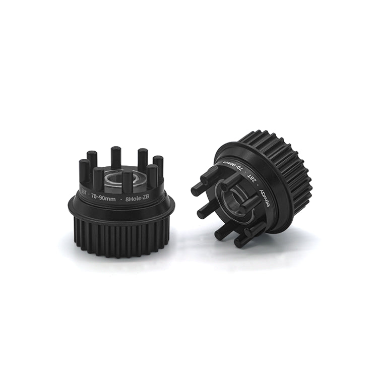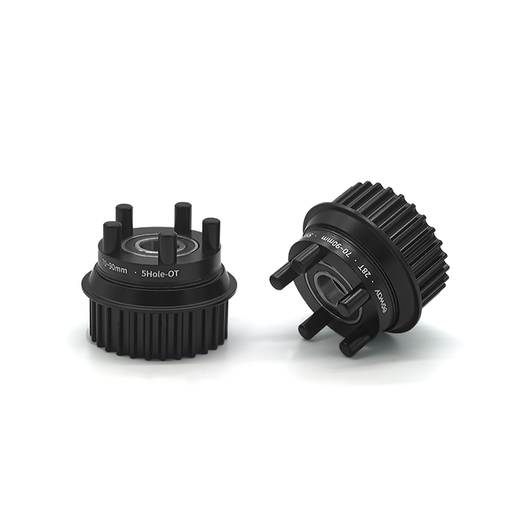 Swappable wheel pulley adapters allow for compatibility with a wide range of the most popular wheels available.