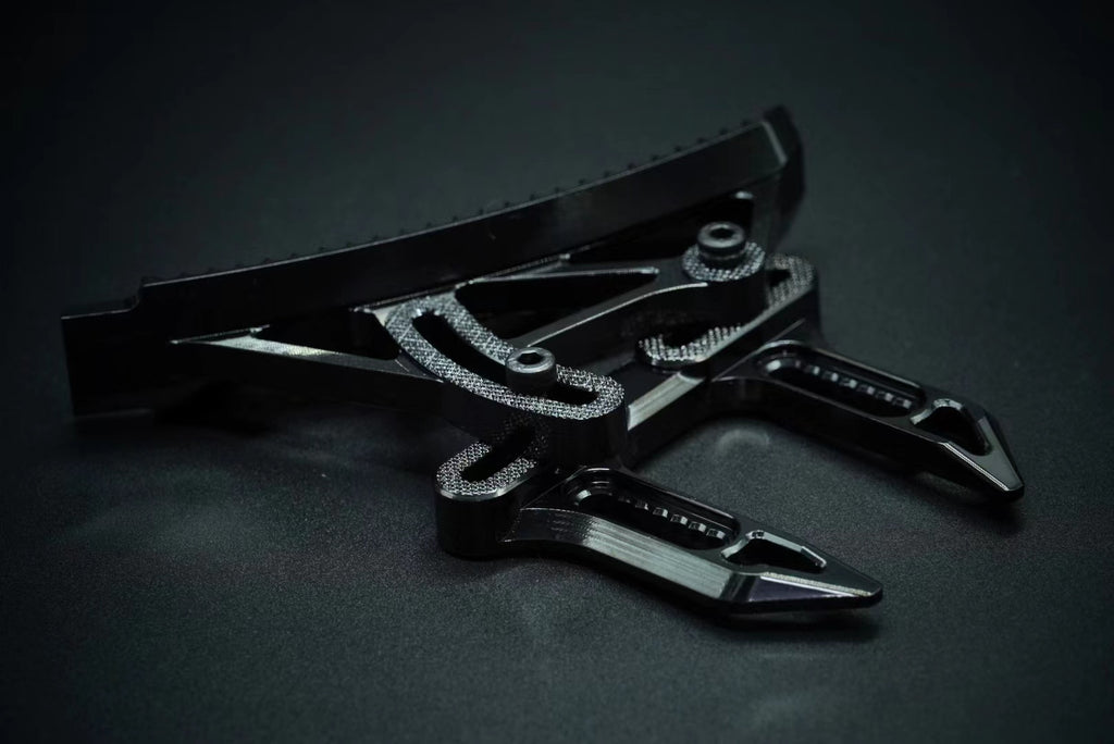 The NEWBEE designed Exway Footstop KATANA! is an essential addition to any board of those who like to ride hard and fast. With a wide adjustable angle and generous baseplate adjustment, the design and anti-slip pattern combine to provide a sleek looking yet totally functional footstop to help lock your foot to to board when you're pushing thins to the limit.